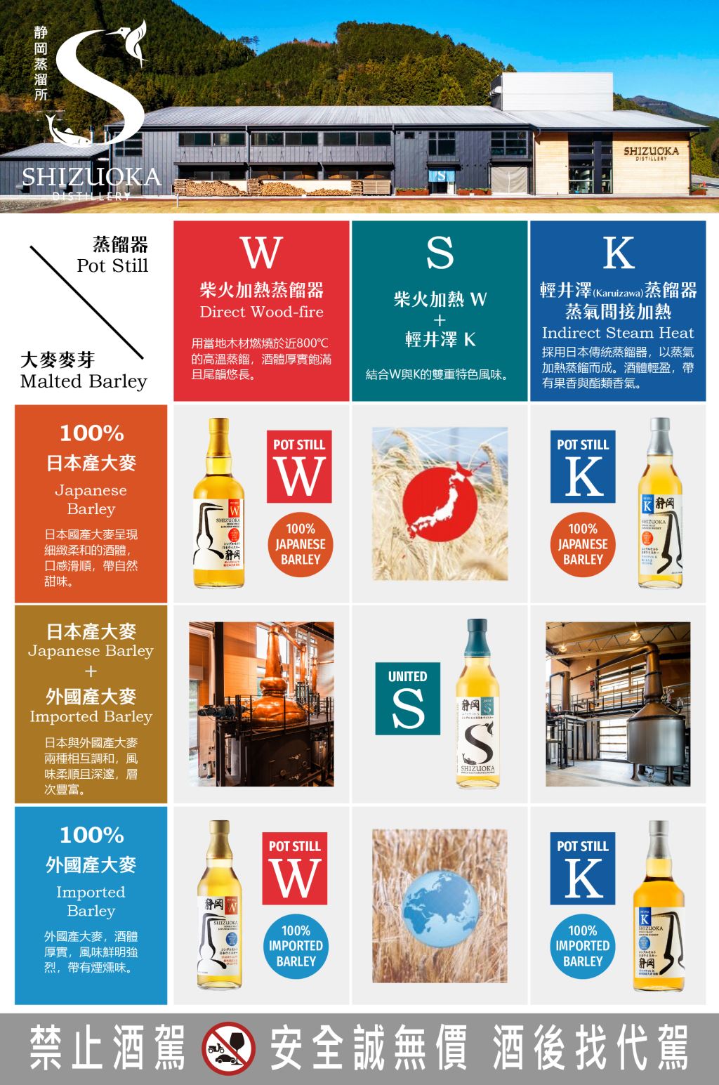 靜岡自2016年投產以來,是最早將「風土」一詞應用於威士忌領域的蒸餾所之一。日本本土大麥、進口大麥會依據產地和類型(例如泥煤味和非泥煤味)單獨進行發酵。目的是強調不同產地帶來的香氣和風味差異。以「Pot Still」系列推出。這款最新推出的威士忌帶有濃郁的泥煤風味,是他們以往產品中煙燻味最濃的一款。